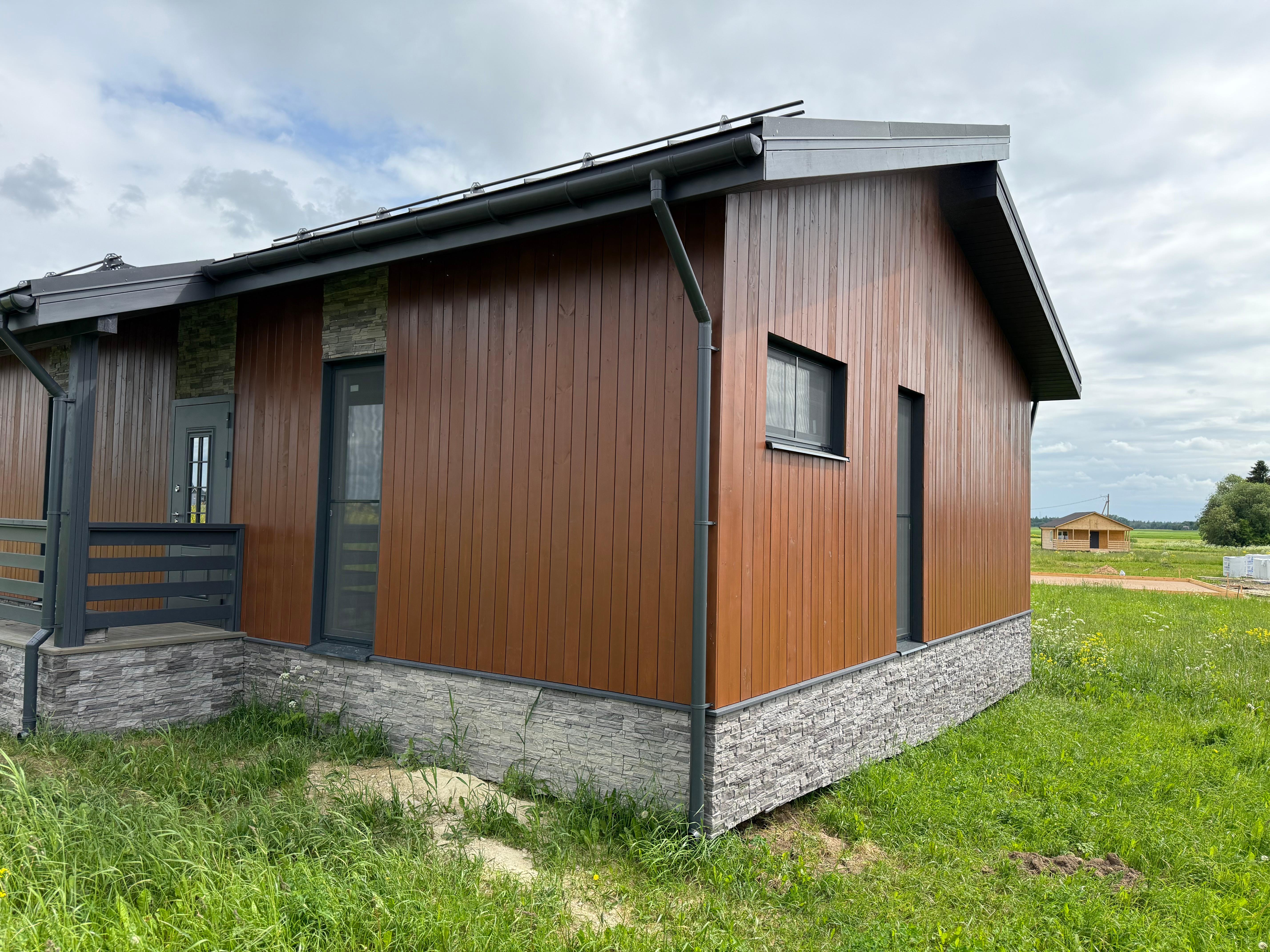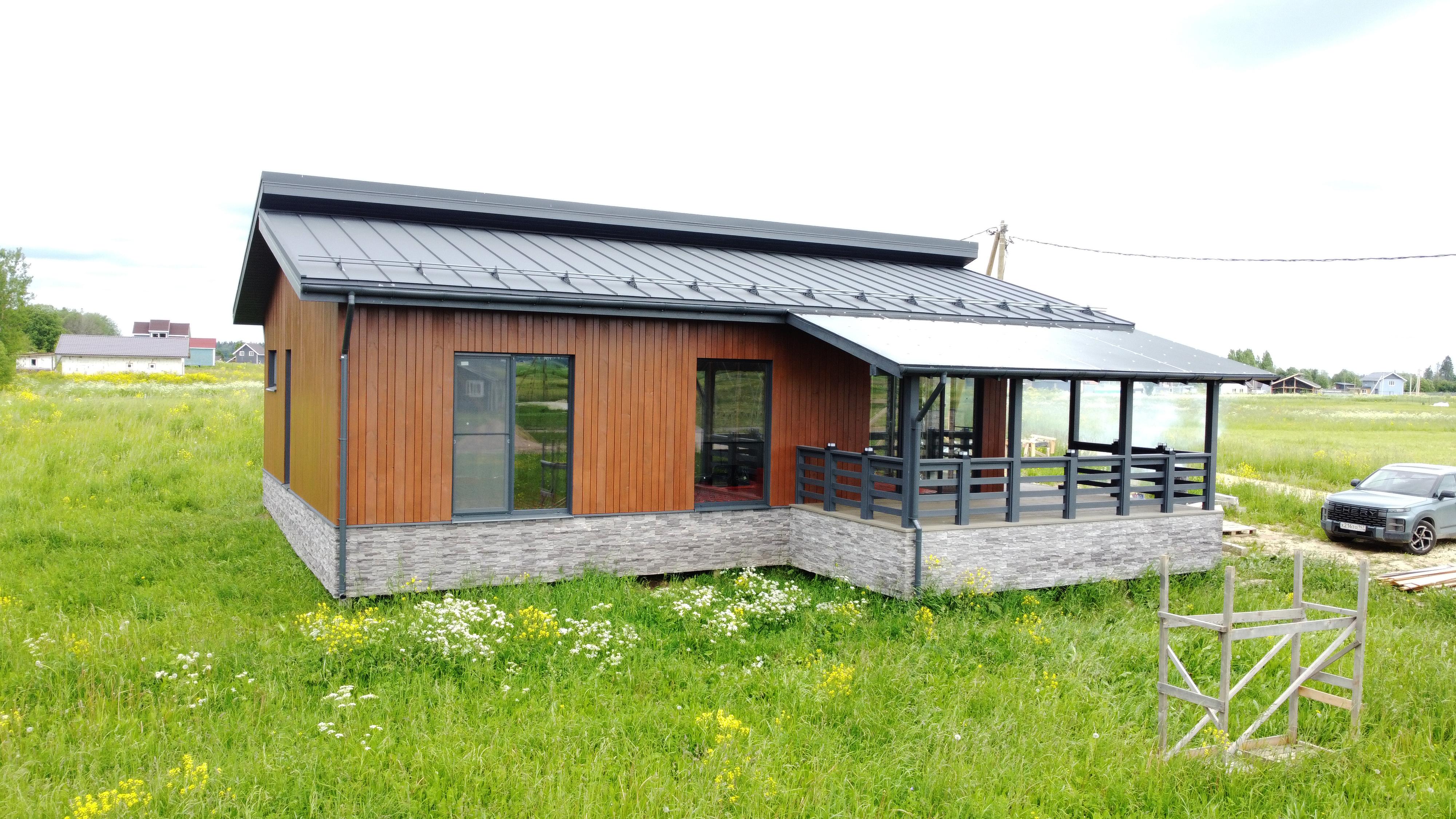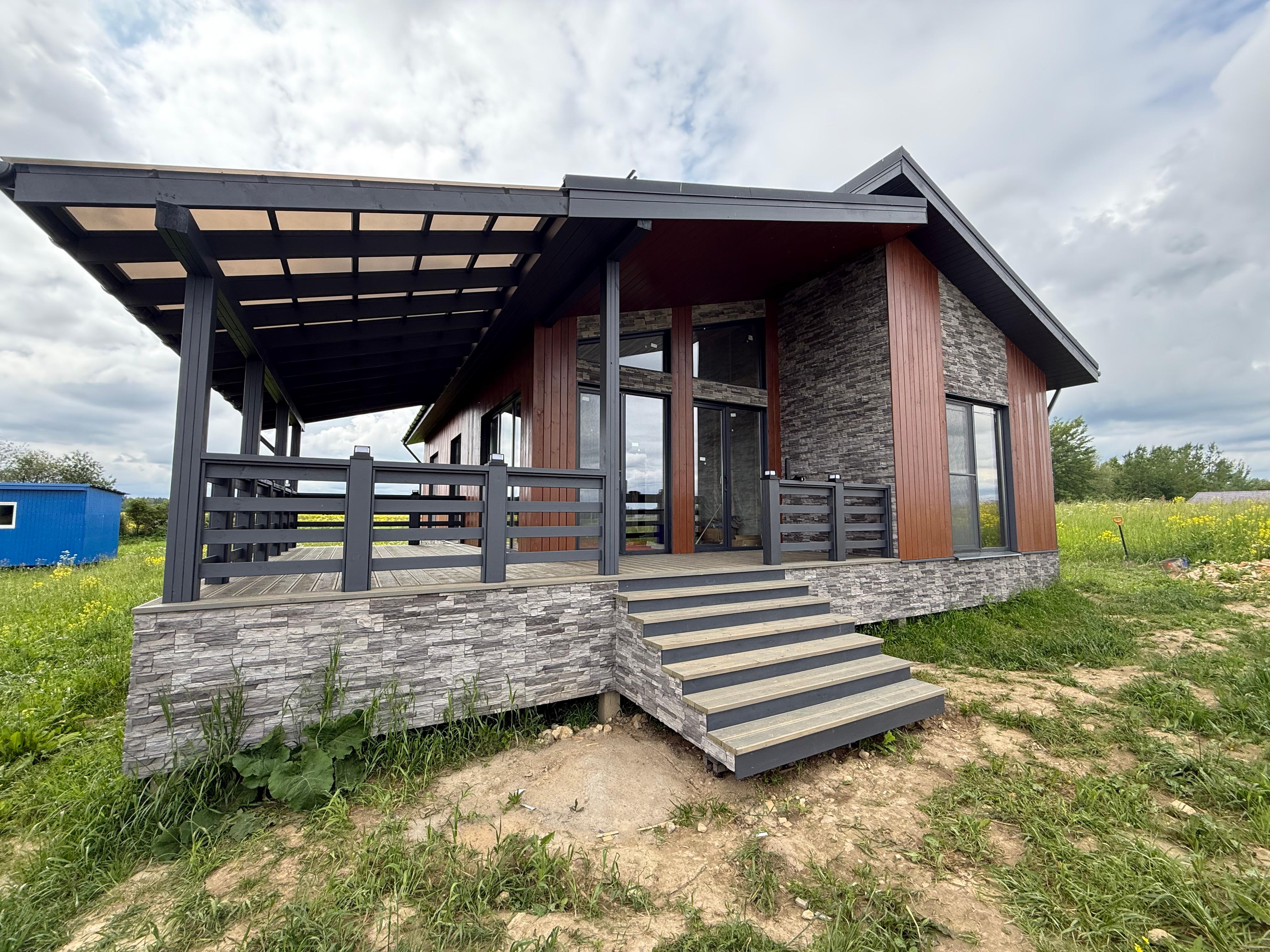 Продается новый каркасный дом на участке 10 соток в КП Мурава Посёлок находится в 3 км от Гостилиц, где есть вся необходимая инфраструктура. О всех прелестях поселка можно прочитать на их сайте. Соседи отличные, активно строятся. Участок: - Сухой, не нуждается в дополнительных вложениях. - Забор по периметру из евроштакетника с откатными воротами и калиткой (на фото его нет еще) - Соседи только с 1 стороны. - Можно выкупить соседний участок 8 соток Дом продается в комплектации теплый контур+инженерные коммуникации. Только так Вы сможете оценить качество сборки каркасного дома. Все конструкции можно посмотреть и проверить. Покупать каркасник с отделкой - лотерея. Коммуникации: - Электричество подключено 15КВт, заведено в дом, собран временный щит. - Скважина с чистой ПИТЬЕВОЙ водой, вода в доме - Система кондиционирования, отопления, очистки воздуха, вентиляция (канальный кондиционер с разводкой в каждое помещение) Все в одном флаконе. Своеобразный климат контроль дома с управлением в смартфоне. - Сделана разводка канализации - Сделана разводка горячей и холодной воды - Смонтированы теплые водяные полы по всему дому, сделана полусухая стяжка. - Установлена станция биологической очистки Биопурит 5. На 6 человек Комплектация дома - Фундамент - жб сваи - Силовой каркас - сухая строганная завальцованная доска - Кровля - клик фальц Грандлайн с матовым покрытием (графит) - Утепление стен 200мм (150+50) - Утепление потолка 250мм (200+50) - Утепление пола - ЦСП 16мм+ 150мм пеноплекс на клей. (подготовка под монтаж теплого водяного пола и стяжки). Пол теплее и прочнее, чем в квартире. - Фасад - планкен окрашенный маслом и краской Тиккурила + декоративный камень - Светопрозрачная кровля на террасе - Водосточная система. - Все пленки профессиональной серии с проклейкой стыков. - Окна - рехау 70мм (пакет 42мм) двухкамерные в цвет фасада - Входная дверь с терморазрывом