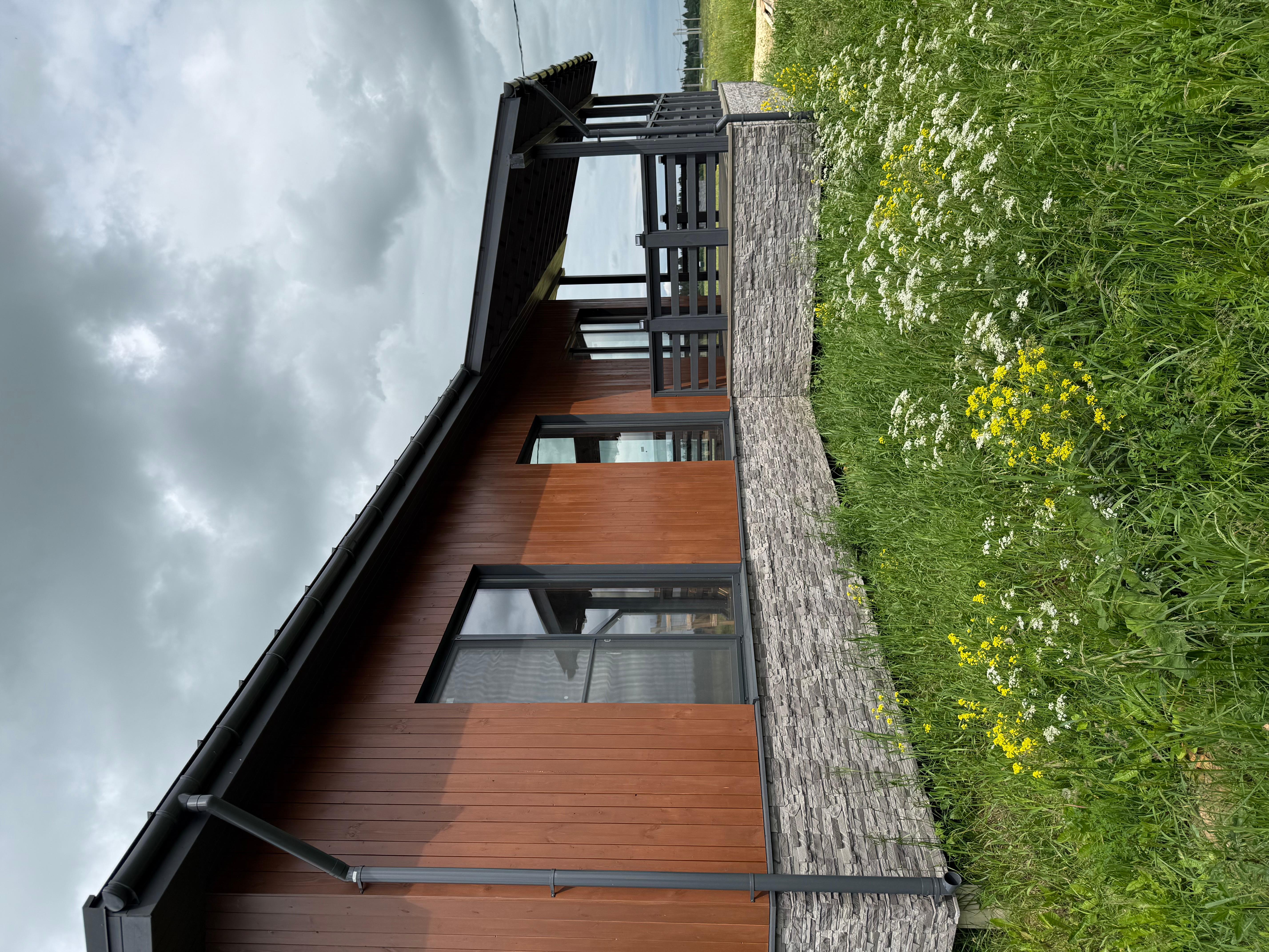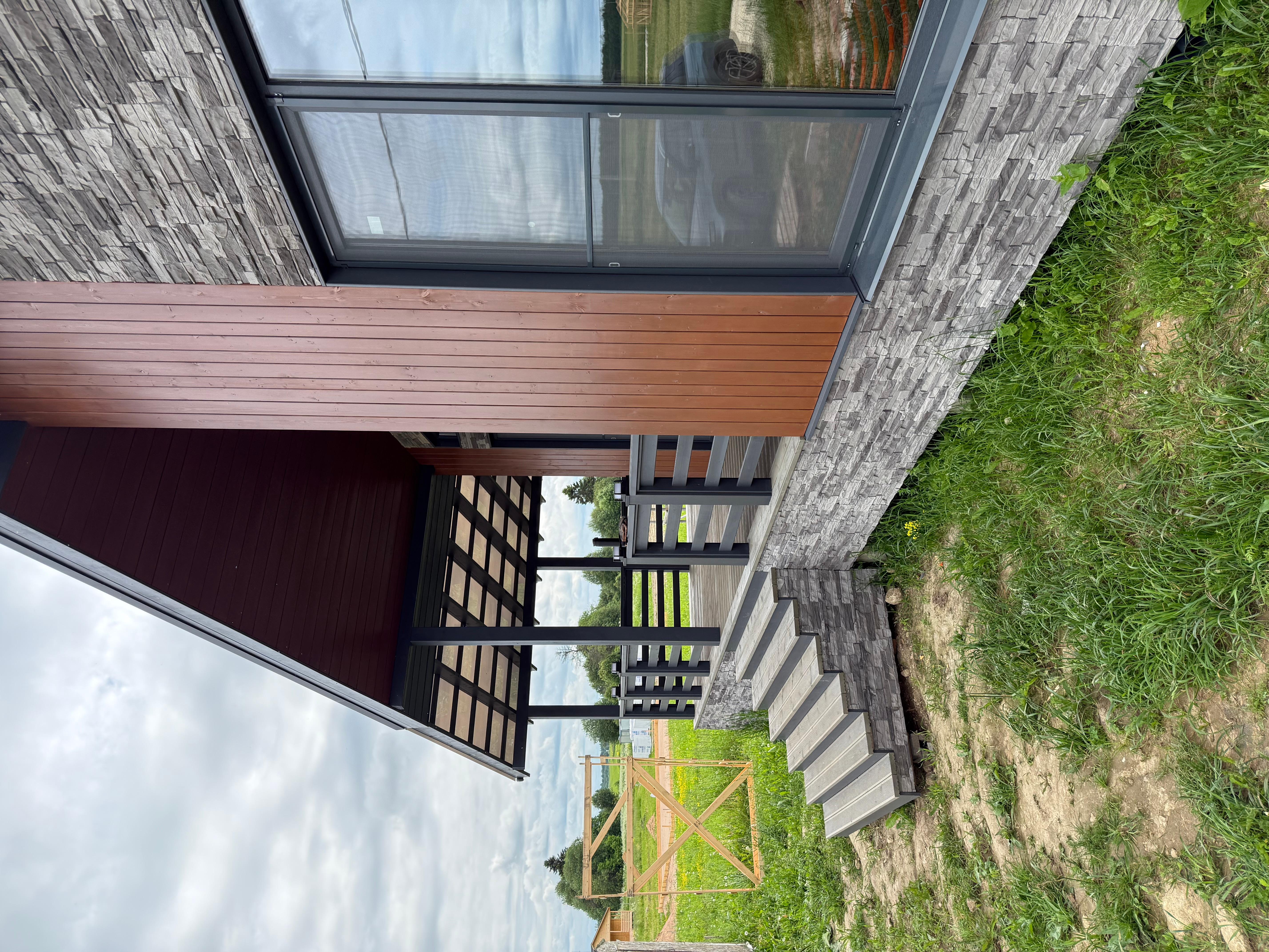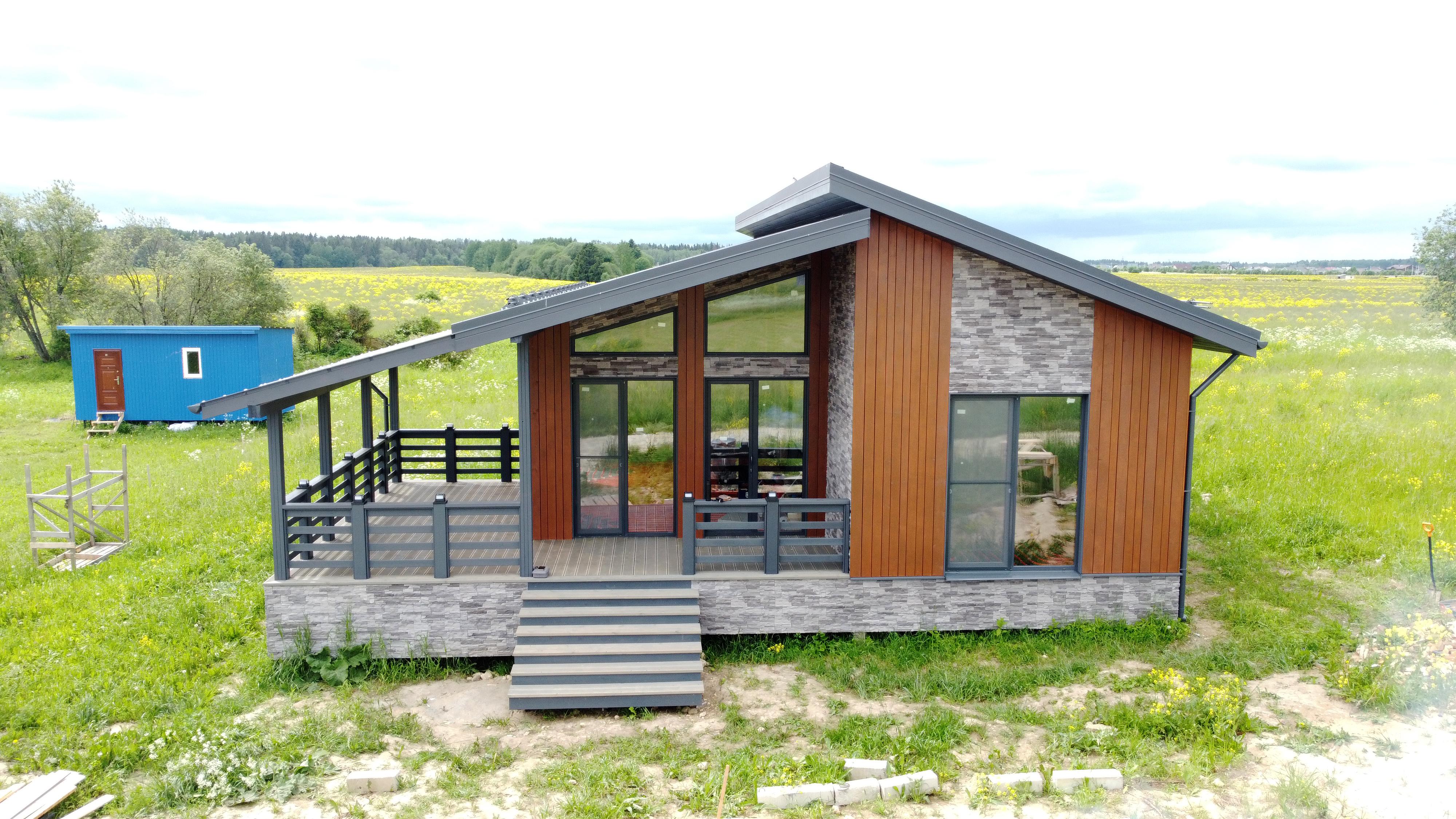 Продается новый каркасный дом на участке 10 соток в КП Мурава Посёлок находится в 3 км от Гостилиц, где есть вся необходимая инфраструктура. О всех прелестях поселка можно прочитать на их сайте. Соседи отличные, активно строятся. Участок: - Сухой, не нуждается в дополнительных вложениях. - Забор по периметру из евроштакетника с откатными воротами и калиткой (на фото его нет еще) - Соседи только с 1 стороны. - Можно выкупить соседний участок 8 соток Дом продается в комплектации теплый контур+инженерные коммуникации. Только так Вы сможете оценить качество сборки каркасного дома. Все конструкции можно посмотреть и проверить. Покупать каркасник с отделкой - лотерея. Коммуникации: - Электричество подключено 15КВт, заведено в дом, собран временный щит. - Скважина с чистой ПИТЬЕВОЙ водой, вода в доме - Система кондиционирования, отопления, очистки воздуха, вентиляция (канальный кондиционер с разводкой в каждое помещение) Все в одном флаконе. Своеобразный климат контроль дома с управлением в смартфоне. - Сделана разводка канализации - Сделана разводка горячей и холодной воды - Смонтированы теплые водяные полы по всему дому, сделана полусухая стяжка. - Установлена станция биологической очистки Биопурит 5. На 6 человек Комплектация дома - Фундамент - жб сваи - Силовой каркас - сухая строганная завальцованная доска - Кровля - клик фальц Грандлайн с матовым покрытием (графит) - Утепление стен 200мм (150+50) - Утепление потолка 250мм (200+50) - Утепление пола - ЦСП 16мм+ 150мм пеноплекс на клей. (подготовка под монтаж теплого водяного пола и стяжки). Пол теплее и прочнее, чем в квартире. - Фасад - планкен окрашенный маслом и краской Тиккурила + декоративный камень - Светопрозрачная кровля на террасе - Водосточная система. - Все пленки профессиональной серии с проклейкой стыков. - Окна - рехау 70мм (пакет 42мм) двухкамерные в цвет фасада - Входная дверь с терморазрывом